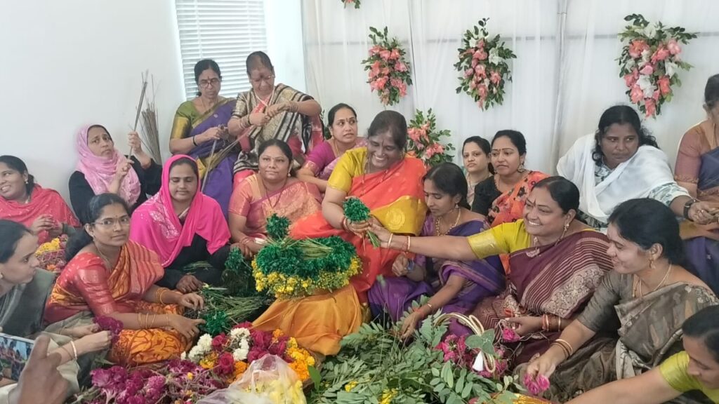 మీ:: న్యూస్ సూర్యాపేట జిల్లా స్టాఫ్ రిపోర్టర్ కోల రవీందర్ గౌడ్::సూర్యాపేట పట్టణంలోని మాజీ విద్యుత్ శాఖ మంత్రివర్యులు స్థానిక ఎమ్మెల్యే గుంటకండ్ల జగదీశ్ రెడ్డి కార్యాలయంలో బతుకమ్మ పండుగ సందర్భంగా ఎంగిలిపువ్వు కార్యక్రమంలో భాగంగా బతుకమ్మను పెంచిన ఎస్ ఫౌండేషన్ చైర్మన్ గుంటకండ్ల సునీత జగదీష్ రెడ్డి తో పాటు మున్సిపల్ చైర్ పర్సన్ పెరుమాళ్ళ అన్నపూర్ణ శ్రీనివాస్ ఈ సందర్భంగా ఎస్ ఫౌండేషన్ చైర్మన్ మాట్లాడుతూ తెలంగాణ రాష్ట్ర ప్రజలందరికీ బతుకమ్మ పండగ శుభాకాంక్షలు తెలియజేశారు. ఈ కార్యక్రమంలో స్థానిక వార్డు కౌన్సిలర్లు నిమ్మల స్రవంతి శ్రీనివాస్, ఆకుల కవిత లవకుశ, బత్తుల లక్ష్మి జానీ యాదవ్, వల్దాస్ సౌమ్య జానీ, గండూరి పావని కృపాకర్, కొండపల్లి భద్రమ్మ సాగర్ రెడ్డి, కో ఆప్షన్ నెంబర్ స్వరూప శశికాంత్, మాజీ కౌన్సిలర్ సారగళ్ళ మాణిక్యమ్మ, బి ఆర్ ఎస్ పార్టీ మహిళా నాయకురాలు మహమ్మద్ సల్మా, విజయ, కరుణశ్రీ, ఢిల్లీ పావని, తదితరులు పాల్గొన్నారు.