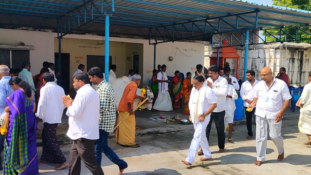 •మీ:: న్యూస్ అక్టోబర్ 05::హుజూర్నగర్ నియోజకవర్గ పరిధిలో బూరుగడ్డ గ్రామంలో వేంచేసియున్న. శ్రీ శాల్మిలి కంద. ఆది వరహాలక్ష్మి నరసింహ వేణుగోపాల స్వామి దేవాలయాన్ని సందర్శించి. ముందుగా స్వామివారిని దర్శించుకుని ప్రత్యేక పూజా కార్యక్రమంలో పాల్గొని తదుపరి గోమాత పూజా కార్యక్రమంలో పాల్గొని ఆలయ విశిష్టతను. తెలుసుకొని. అక్కడ జరుగుతున్న. దేవాలయ అభివృద్ధి. నిత్యం జరుగుతున్న. పూజా కార్యక్రమాలు. తెలుసుకోవడం జరిగింది. అక్కడ ప్రత్యేకత శ్రీ అనంత పద్మ నాభ స్వామి కొలువై ఉండడం. ప్రత్యేకత. కాకతీయుల నాటి కాలంలో . రాతి కట్టడాలతో నిర్మించిన అతి పురాతనమైన దేవాలయం. అట్టి దేవాలయానికి. సుమారుగా 500 ఎకరాల. పైగా భూమి ఉన్నది. గతంలో. అక్కడ. కూడా కనీసం కౌలు కూడా ఇవ్వని పరిస్థితి. దాంతో. అదే గ్రామానికి చెందిన. కొందరు రైతులు. మరియు ప్రముఖ హైకోర్టు అడ్వకేట్ శ్రీ బొల్లం లింగయ్య యాదవ్ గార్లు. అట్టి భూములపై సుదీర్ఘ పోరాటం తర్వాత. గౌరవ హైకోర్టు దేవాలయం కు కౌలు ఇచ్చే విధంగా. తీర్పు ఇచ్చింది. అప్పటినుంచి ప్రతి ఏటా రైతులు. కౌలు ఇస్తుండటంతో. ఆలయం దినదిన అభివృద్ధి చెందుతుంది. అక్కడ దేవాలయం ఈవోకు ప్రత్యేక కార్యాలయం. అదేవిధంగా రికార్డు గది. ఇక్కడ దేవాలయ ప్రధాన అర్చకులకు. ప్రత్యేక వంటశాల. 11 మంది సిబ్బంది. వచ్చిన భక్తులకు ప్రతిరోజు. రెండు రకాల నైవేద్యాలు. చాలా అద్భుతంగా ఉన్నాయి. అక్కడ గ్రామ ప్రజలతో పాటు నాయకులకు. దేవాలయం అభివృద్ధి చెందాలన్న తపన ఆరాటం భగవంతుడిపై నమ్మకం పూర్తి విశ్వాసంతో. కలిసికట్టుగా ఆలయం అభివృద్ధి చేయాలన్న సంకల్పం బలంగా ఉంది. ఇంకా ఈరోజు విశేషమేమిటంటే. ఈరోజు నూతన పాలకవర్గం కొలువు తీరింది. ఇంకా ఈ కార్యక్రమంలో. ఆలయ ఈవో లక్ష్మణరావు. మేళ్లచెరువు ఈవో గుజ్జుల కొండారెడ్డి. హుజూర్నగర్ నియోజకవర్గ నాయకులు అరుణ్ కుమార్ దేశ్ ముఖ్. యరగాని నాగన్న . ఈడుపుగంటి సుబ్బారావు. . దొంగరి వెంకటేశ్వర్లు. తదితర నాయకులు. నూతన కార్యవర్గ సభ్యులు. పెద్ద సంఖ్యలో భక్తులు పాల్గొన్నారు