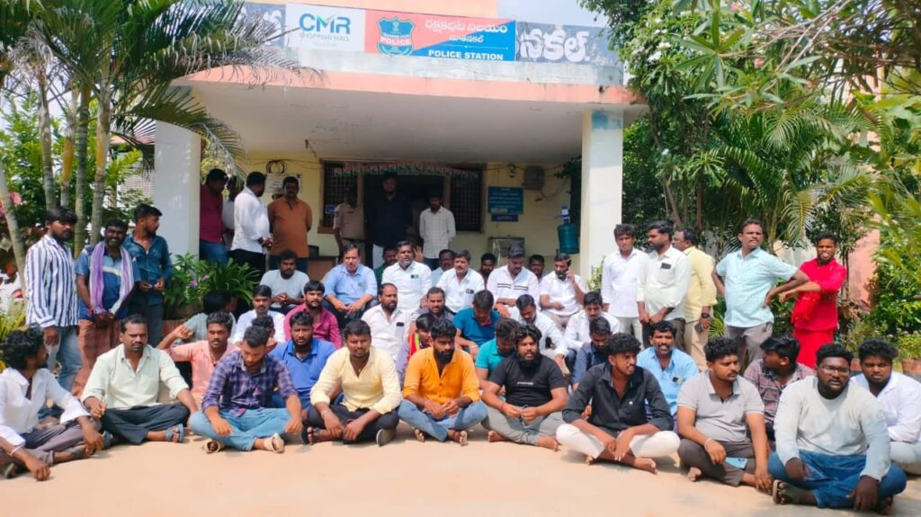 మండల పోలీస్ స్టేషన్ ముందు కాంగ్రెస్ నాయకుల ధర్నా…