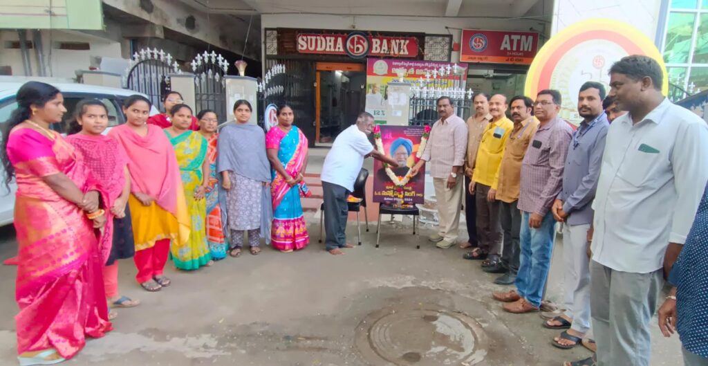 మీ న్యూస్ ప్రతినిధి డిసెంబర్ 27:: మాజీ ప్రధానమంత్రి ప్రపంచంలో నే గొప్ప ఆర్థిక శాస్త్రవేత్త మన్మోహన్ సింగ్ మరణం దేశం యావత్తు కు దిగ్బాంతి గురిచేసిందని సుధా బ్యాంకు చైర్మన్ మీలా మహదేవ్ మేనేజింగ్ డైరెక్టర్ పెద్దిరెడ్డి గణేశ్ తెలిపారు. శుక్రవారం సుధా బ్యాంకు ఆవరణలో మాజీ ప్రధానమంత్రి మన్మోహన్ సింగ్ చిత్రపటానికి వేసి పూల మాలలు ఘనంగా నివాళులర్పించారు. ఈ సందర్భంగా వారు మాట్లాడుతూ మన్మోహన్ సింగ్ ఆర్థిక సరళీకృత విధానాలను భారత దేశంలో అనుసరింపజేసి ప్రపంచవ్యాప్తంగా పెట్టుబడులను ఆకర్షింపజేసి పునారిల్లుతున్న దేశ ఆర్థిక వ్యవస్థను గాడిలో పెట్టి దేశ ప్రధానిగా ఎనలేని సేవలు చేశారని కొనియాడారు. ఈ రోజున భారతదేశ ప్రపంచంలోనే ఐదవ గొప్ప ఆర్థిక శక్తిగా ఎదగడానికి బీజాలు వేసి, పునాదులు వేసి క్రమశిక్షణ ,ఆర్ధిక వైద్యుడిగా ఎంతో పరిజ్ఞానం కలిగి మన దేశానికి ఎనలేని సేవలు చేశారని అందుకు సుధ బ్యాంకు ఘనమైన నివాళులర్పిస్తుంది అని అన్నారు. వారు రిజర్వ్ బ్యాంక్ గవర్నర్ గా, ఆర్థిక మంత్రిగా, ప్రధానమంత్రిగా జీవితాంతం ఆర్థిక రంగంలో పనిచేసి దేశానికి ఆర్థికంగా పరిపుష్టి చేయడానికి వారు చేసిన సేవలను భారతదేశము కొనియాడుతు నివాళులు అర్పిస్తుందని తెలిపారు. అమలు లో అన్న ఆధార్ కార్డు, సమాచార హక్కు చట్టం మొదలైనవి ఎన్నో కొత్త విధానాలను ప్రవేశపెట్టి ప్రపంచ పటంలో భారతదేశాన్ని బలమైన ఆర్థిక శక్తిగా నిలబెట్టాలని గుర్తించారు. ఈ కార్యక్రమంలో బ్యాంకు మేనేజర్లు రవీందర్ రెడ్డి మాధవి, సైదులు, సిబ్బంది ఖాతాదారులు పాల్గొన్నారు.