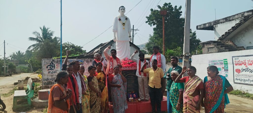 మీ న్యూస్ మోతే మండల ప్రతినిధి జనవరి 13:: మోతే మండలం సిరికొండ గ్రామంలో కామ్రేడ్ ఉప్పుల మన్సూర్ గారి నిలువెత్తు విగ్రహాని కి MCPIU సూర్యాపేట జిల్లా కార్యదర్శి షేక్ నజీర్ ప్రజానాట్యమండలి జిల్లా నాయకులు కంపాటి శ్రీను పూలమాలలు వేసి శ్రద్ధాంజలి ఘటించారు.మోతే మండలం సిరికొండ గ్రామంలో కామ్రేడ్ ఉప్పుల మన్సూర్ గారి 26వ వర్ధంతి సందర్భంగా ఎం సి పి ఐ యు రాష్ట్ర కార్యదర్శి వర్గ సభ్యులు వరికుప్పల వెంకన్న మాట్లాడుతూ మోతే మండలం సిరికొండ గ్రామంలో పుట్టిన కామ్రేడ్ ఉప్పల మన్సూర్ సూర్యాపేట నియోజకవర్గానికి మొట్టమొదటి ఎమ్మెల్యేగా ఎన్నికై నాలుగు సార్లు మడమతిప్పని ప్రజాప్రతినిధిగా కామ్రేడ్ ఉప్పల మన్సూర్ నీతి నిజాయితీకి మారుపేరుగా మాటమీద నిలబడే వ్యక్తిగా నాలుగు సార్లు ఎమ్మెల్యేగా ఎన్నికైన పైసా కూడా పెట్టని నాయకుడు కామ్రేడ్ ఉప్పల మన్సూర్. చివరకు సిరికొండ సర్పంచిగా ఎన్నికై తన వృత్తిని కొనసాగిస్తూ కుటుంబాన్ని పోషించినటువంటి మహానాయకుడు కామ్రేడ్ ఉప్పల మన్సూర్ అంతటి నాయకుని విగ్రహాన్ని జిల్లా కేంద్రమైన సూర్యాపేట పట్టణంలో నెలకొల్పాలని వారు ప్రభుత్వ ని కి విజ్ఞప్తి చేశారు. తను నివాసం ఉంటున్న ఇంటి స్థలం ప్రభుత్వ పాఠశాలకు ఇచ్చినటువంటి త్యాగదనుడు.కామ్రేడ్ భీమిరెడ్డి నరసింహారెడ్డి మద్ది కాయల ఓంకార్ గారి ఆశయాలు తీసుకుని ప్రజల తరఫున నిరంతరం పోరాటం చేసినటువంటి నాయకుడు అంతటి నాయకునికి వారి కుటుంబానికి ఇప్పుడు నిలువు నీడ లేనటువంటి పరిస్థితి .చాలామంది నాయకులు వచ్చి పరమార్శించి వెళ్తారే కానీ వారికి తగు న్యాయం చేయలేదు. ఇప్పుడున్న రేవంత్ రెడ్డి ప్రభుత్వం తక్షణమే వారి కుటుంబానికి ఇందిరమ్మ ఇండ్ల ను మంజూరు చేసి ఆదుకోవాలని MCPIU విజ్ఞప్తి చేస్తుంది. MCPIU జిల్లా కార్యదర్శి షేక్ నజీర్ మాట్లాడుతూ నేడు ఏ చిన్న అవకాశం వచ్చినా కోట్లకు పడిగెత్తి నాయకులు ఉన్న ఈ రోజుల్లో కామ్రేడ్ ఉప్పుల మన్సూర్ గారు తను నమ్మిన సిద్ధాంతం కొరకు పాటుపడుతూ తను చివరి వరకు ఆటోలో బస్సులో ప్రయాణిస్తూ ప్రజా కార్యక్రమాలలోపాల్గొంటూ శాసనసభకు ఆటోలోనే పోయి తన వానిని వినిపించిన మహా నాయకుడు కామ్రేడ్ ఉప్పల మన్సూర్ రని నేటి యువత వారి ఆశయాలను తీసుకొని ముందుకు పోవాలని అన్నారు.ప్రజానాట్యమండలి జిల్లా నాయకులు కాంపాటి శ్రీనివాస్ మాట్లాడుతూ మారుమూల గ్రామమైన సిరికొండలో పుట్టి రాష్ట్రవ్యాప్తంగా అణగారిన వర్గాల ప్రతినిధిగా 30 సంవత్సరాలు ఎన్నికయి నిస్వార్థ జీవితాన్ని అనుభవించిన కామ్రేడు ఉప్పుల మన్సూర్ గారి విగ్రహాన్ని హైదరాబాద్ నడిబొడ్డులో ప్రతిస్తించి వర్ధంతి ప్రభుత్వమే నిర్వహించాలని ఆయన డిమాండ్ చేశారు.ఈ కార్యక్రమంలో పార్టీ జిల్లా కమిటీ సభ్యురాలు వారి కుమార్తె సంపంగి 