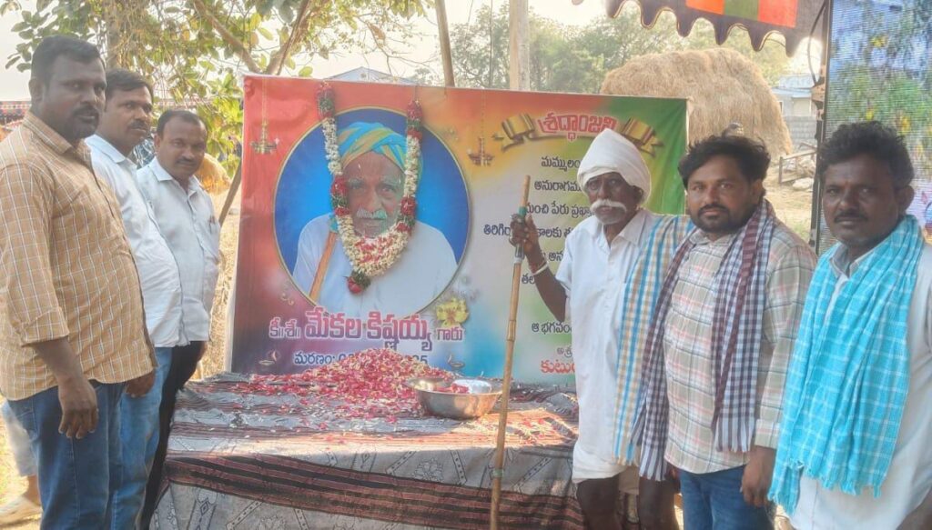 మీ న్యూస్ ప్రతినిధి:: మోతే: మేకల కిష్టయ్య సమాజానికి చేసిన సేవ మరువలేనిదని సిపిఎం జిల్లా కార్యదర్శి వర్గ సభ్యులు మట్టిపల్లి సైదులు అన్నారు. గురువారంమోతే మండలం సర్వారం గ్రామంలో ఇటీవల అనారోగ్యంతో మృతి చెందిన మేకల కిష్టయ్య దశదినకర్మకు హాజరై ఆయన మాట్లాడుతూ రైతు కుటుంబంలో పుట్టిన మేకల కిష్టయ్య తన జీవితాంతం సమాజ అభివృద్ధికి ఎంతో కృషి చేశారని అన్నారు. గ్రామంలో ప్రజలకు ఏ కష్టం వచ్చినా అండగా నిలిచిన మహానుభావుడు కిష్టయ్య అన్నారు. ఎన్నో కష్టాలు వచ్చినా వాటిని భయపడకుండా ముందుకు సాగాలని అన్నారు. తన బంధు మిత్రులకు ఎలాంటి కష్టం వచ్చిన వారికి అండగా నిలిచారని అన్నారు.అనంతరం ఆయన చిత్రపటానికి పూలమాల వేసి నివాళి అర్పించారు. ఈ కార్యక్రమంలో యాదవ సంఘం నాయకులు భయ్యా మల్లయ్య యాదవ్, జటంగి గురవయ్య, భయ్యా మల్లికార్జున్ యాదవ్, ఉప్పల అంజయ్య యాదవ్, వేల్పుల లింగయ్య యాదవ్, ములకలపల్లి శ్రీను భయ్యా లింగయ్యతదితరులు పాల్గొన్నారు.