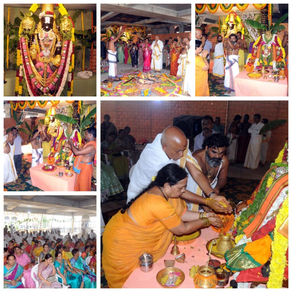 రాష్ట్ర నాయకులు, పట్టణ మాజీ సర్పంచ్ ఎర్నెని కుసుమ వెంకటరత్నం బాబు నివాసంలో అత్యంత వైభవోపెతంగా నిర్వహించారు. వేకువ జాము నుంచే స్వామివారికి అభిషేకాలు జరిపి తీరొక్క పూలతో విశేష అలంకరణ, సహస్రనామాలు, అర్చనలు, కైంకర్యాలు, చక్ర స్నానం, గోపూజ వంటి ఆధ్యాత్మిక కార్యక్రమాలు వేద పండితులు పెద్దింటి అరుణ్ కుమార్ ఆచార్యులు శిష్య బృందం చే పెద్ద ఎత్తున తరలివచ్చిన భక్తుల మధ్య కనుల పండువగ నిర్వహించారు. భక్తులు స్వామివారి కల్యాణాన్ని, శ్రీ లక్ష్మీ నరసింహ సహిత సుదర్శన హోమాన్ని కనులారా తిలకించి తీర్థ ప్రసాదాలు స్వీకరించారు. ఈ సందర్భంగా ఎర్నెని వెంకటరత్నం బాబు మాట్లాడుతూ వెంకటేశ్వర స్వామి కరుణా కటాక్షంతో ప్రజలంతా సుభిక్షంగా ఉండాలని స్వామివారిని వేడుకున్నట్లు తెలిపారు.