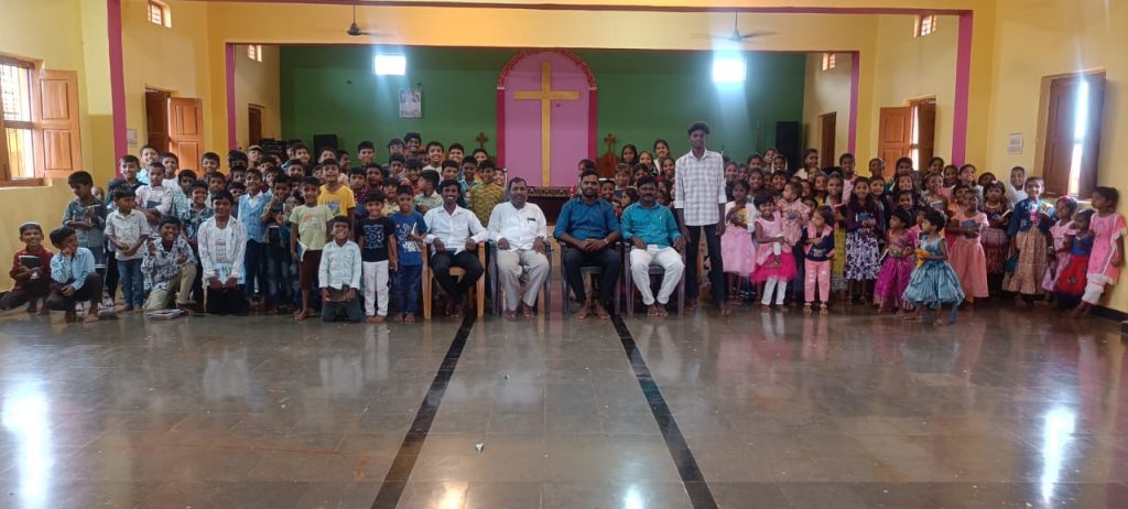 మీ న్యూస్ ప్రతినిధి:-సంగారెడ్డి జిల్లా జహీరాబాద్ నియోజకవర్గం కోహీర్ మండల పరిధిలోని పైడిగుమ్మల్. గ్రామంలో సోమవారం నుండి.ఓకేషనల్. బైబిల్ స్టడీస్ పాటలు స్థానిక సంఘాకాపరి రెవ.రెండ్ ఏం.ఏసురత్నం గారి ఆధ్వర్యంలో ప్రారంభించారు. బైబిల్ పాటలు నేర్చుకోవడం ద్వారా పిల్లలకు. మంచి మార్గo సూచించేవిదంగా ఉంటుందని సంఘాకాపరి తెలియజేసారు. ఈ కార్యక్రమం మూడు రోజుల పాటు నిర్వహిస్ స్తామని మూడవరోజు పిల్లలకు బైబిల్ పాఠాలనుండి పరీక్షలు నిర్వహించి వారికీ బహుమతులు ప్రదానం చేయబడుతుందని. అయన పేర్కొన్నారు ఈ కార్యక్రమం లో ఆర్గానేజర్స్ వినోద్. జీ ఎల్ ఏం. స్టాప్ వర్కర్. జైపాల్ మెథడిస్ట్ చర్చ్ యూత్ సభ్యులు చీమలు గుల్ షన్. రాబోట్. రాకేష్.ప్రవీణ్. శ్రీజ తదితరులు పాల్గొన్నారు